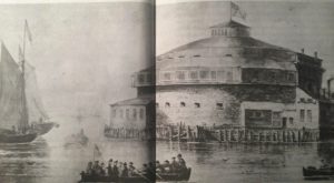 Stacja emigracyjna Castle Garden na południowym Cyplu Manhattanu zwanym Battery