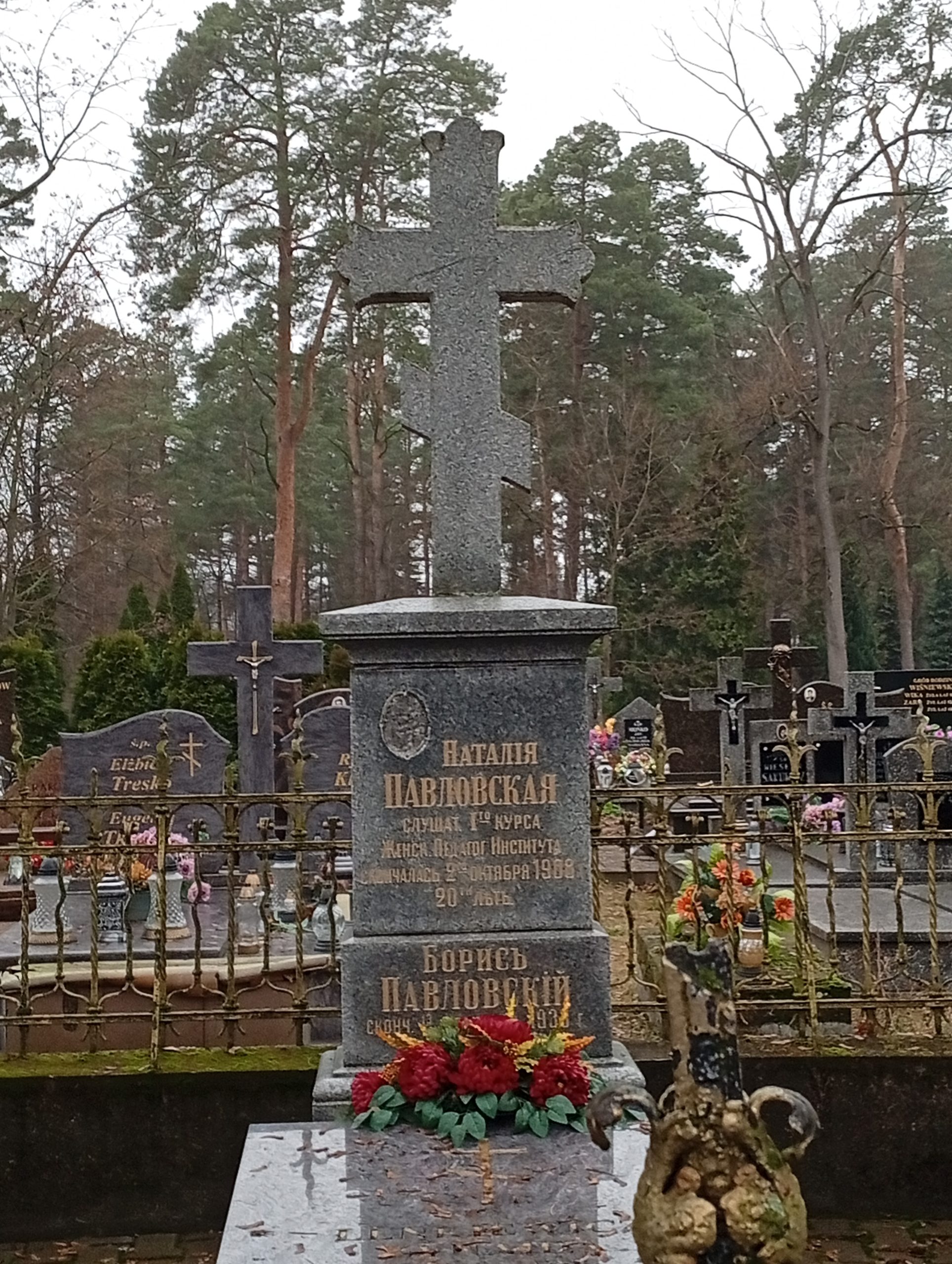Pomnik Natalii Pawłowskiej znajduje się tuż przy głównej alei. Żyła 20 lat. Uwagę przyciąga informacja, że dziewczyna była słuchaczką Żeńskiego Instytutu Pedagogicznego (ros. Женский педагогический институт).