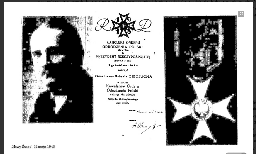 Wkrótce po pogrzebie utworzona została Fundacja Leona Cieciucha. Już w czerwcu 1942 roku rozpoczęła ona zbieranie pieniędzy na paczki dla polskich jeńców. Już wówczas swoje poparcie dla jej działalności wyraziło tysiąc osób uczestniczących w przedstawieniu w teatrze Cameo. W kwietniu 1943 roku Leon Cieciuch został pośmiertnie odznaczony Krzyżem Kawalerskim Orderu Odrodzenia Polski. Uroczystość odbyła się w konsulacie polskim w Nowym Jorku niemal dokładnie w pierwszą rocznicę śmierci. Odznaczenie – przyznane w uznaniu dla podejmowanych przez niego prac społecznych dla dobra Polski – odebrała wdowa Helena. Ona też przejęła audycję nadawaną w stacji WHOM. Nie było to dla niej nowością, bowiem w przeszłości zastępowała męża podczas jego podróży do Polski. W ówczesnej prasie zachowało się kilka śladów po tej działalności – zapowiedź wystąpień mec. Stefana F. Śladowskiego i ob. Zygmunta Ducha w związku z nadchodzącymi wyborami z maja 1943 roku, artykuł o upamiętnieniu w audycji z 3 października 1943 roku bohaterskiego prezydenta Warszawy Stefana Starzyńskiego oraz życzenia bożonarodzeniowe z 26 grudnia 1943 roku. Z uwagi na brak szczegółowych ramówek data zakończenia nadawania audycji trudna jest dziś do ustalenia. Helena zmarła w roku 2001 w wieku 97 lat. O kilka miesięcy przeżyła swojego najstarszego syna. W 2016 roku odeszła Jorena, która w 1947 roku wstąpiła do sióstr Dominikanek i przyjęła imię Helena Roberta. Już w trakcie powstawania tego tekstu – 31 stycznia 2020 roku – zmarł ostatni syn Heleny i Leona, Ryszard.