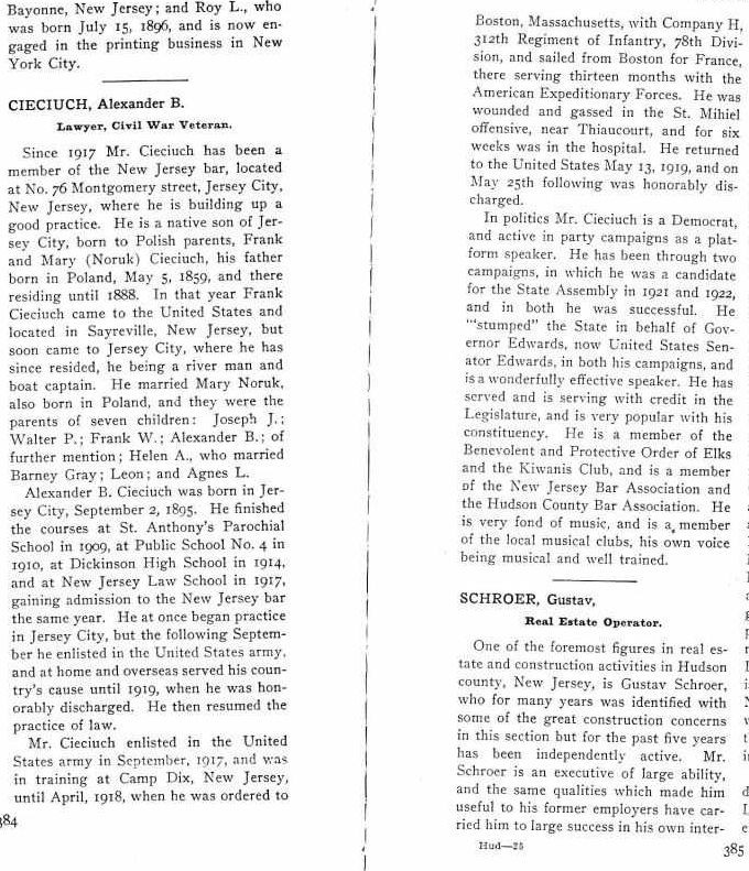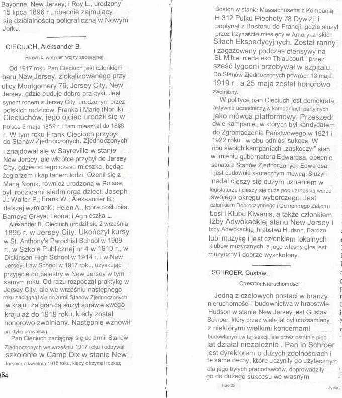 Mimo trudnych początków młodzi emigranci przywiązują ogromną wagę do edukacji swoich dzieci. Większość kończy lokalne uczelnie, a część decyduje się na studia prawnicze - szczególnie widoczne było to wśród braci Cieciuchów. Franciszek (Frank) pracuje jako detektyw, Władysław (Walter) zostaje oficerem policji i osiąga stopień inspektora, natomiast Aleksander robi karierę jako prawnik i polityk, dochodząc do stanowiska w legislaturze stanowej.