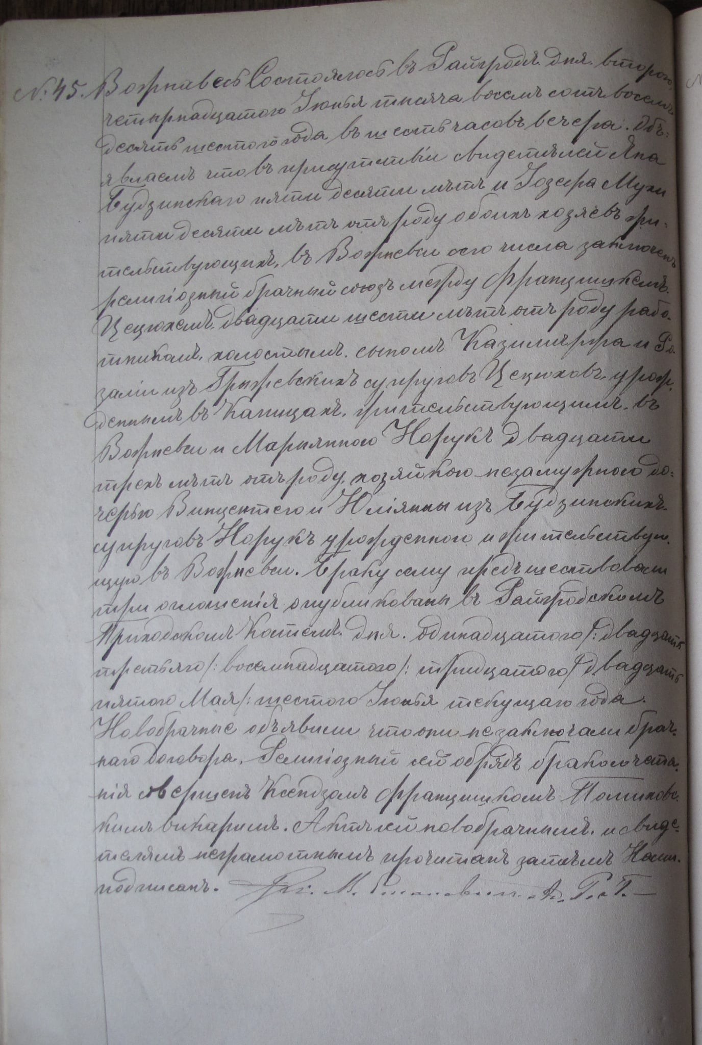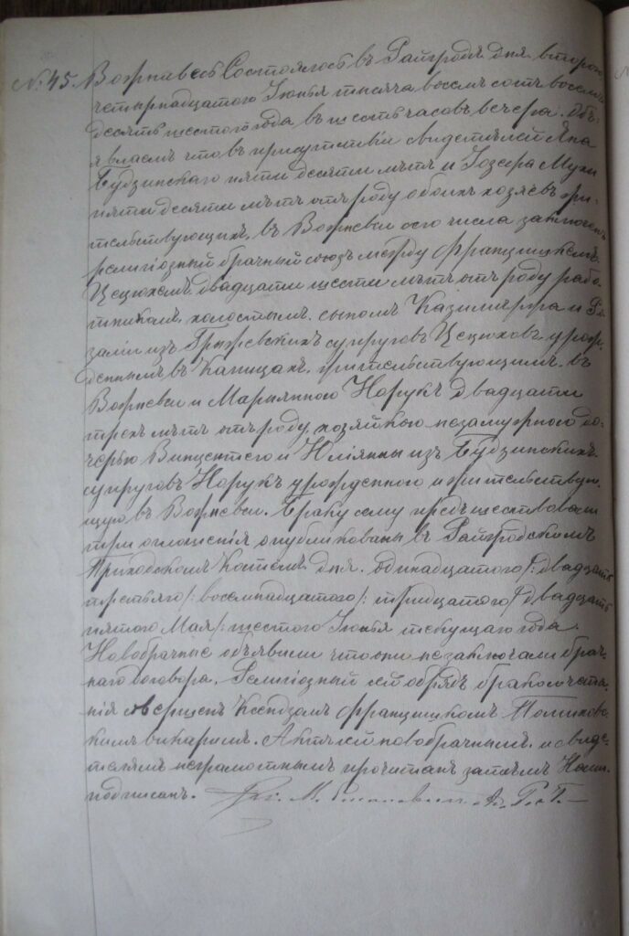 Akt ślubu Franciszka Cieciucha i Marianny Noruk; Rajgród, 1886 r.