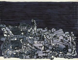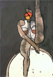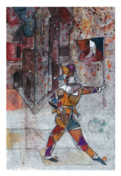 Przemilczenie wojennych losów augustowskich Żydów znajduje poniekąd swoje odbicie w pierwszej wizji, jaką dybuk rękami Lipińskiego wystukuje na maszynie. Ukazuje ona augustowski rynek, a na nim linoskoczka balansującego po linie rozpiętej „pomiędzy zachodnią wieżą kościoła a wieżą magistratu”[26]. Wtem zrywa się potężna burza, symbolizująca wojenną zawieruchę, „piorun uderza w wieżę ratusza, która zapada się w sobie. Linoskoczek schodzi na drugi plan. I tak nie może przeżyć”[27]. W obliczu wojny i własnych cierpień polska społeczność nie dostrzega tragedii narodu żydowskiego. Po opłakaniu swoich zmarłych nie ma już miejsca dla Żydów.