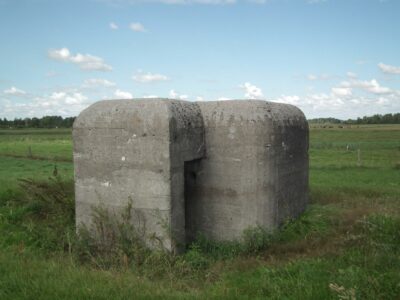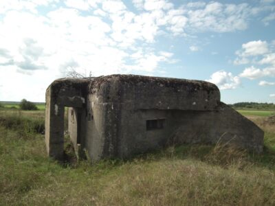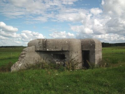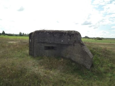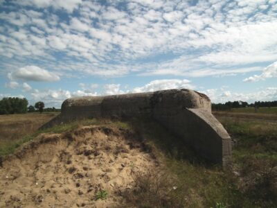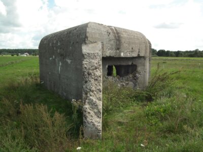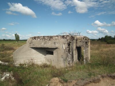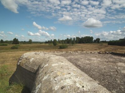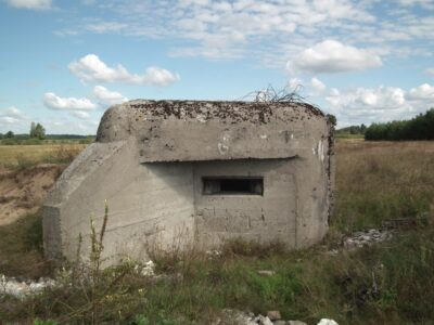 Near the town of Promiski, which territorially belongs to the Augustów commune, but "spiritually" to the Sztabin parish (until 1895 it belonged to the Krasnybór parish), there is a complex of three combat bunkers built in 1939. On March 23, 1939, Marshal Edward Śmigły-Rydz established the "Narew" Independent Operational Group to defend the north-eastern section of the front, which was based on the Lithuanian border and the line of the Augustów Canal, Biebrza and Narew. The front was divided into sections, one of them was the section "Augustów". It was planned to build 57 concrete and wooden-earth bunkers there. Brought from the Latvian border in April 1939, the KOP infantry battalion "Słobódka" under the command of Lt. Col. Jan Lachowicz was to build fortifications from Augustów up to the Dębowo Lock. Work on the construction of the shelters began on May 21, 1939. Until September 1 thre were buit only few: 1 concrete bunker in Augustów, 5 wooden and earth bunkers in Białobrzegi, 2 medium-sized concrete bunkers in Gliniski (one of them had no armored dome installed) and three light concrete bunkers in Promiski. Almost all the bunkers were connected by shooting ditches, the so-called "tranches". A dam was also built on the Netta River and the meadows from Promiski to Dębowo were flooded. Two northern bunkers No. 1 and 2 were intended for one HMG for side fire, No. 3 was intended for two HMGs with the so-called oblique fire.