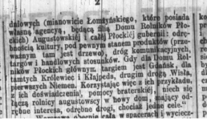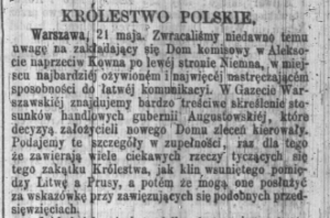 In connection with the opening of the commission house in Aleksota, an article appeared in Dziennik Poznański, No. 120 from 1860, describing why the Augustów Canal never attained the significance attributed to it during design and construction. But there is a lot of information about the economic situation of the Augustów Governorate, the main export goods. The author also suggests that the economic situation could be improved by the creation of the House of Orders for Augustów Farmers. Was there one like this?