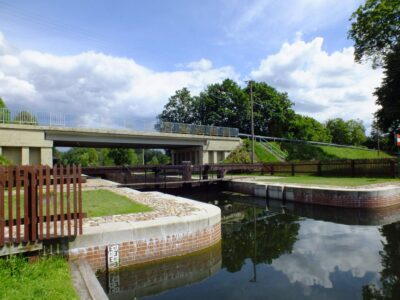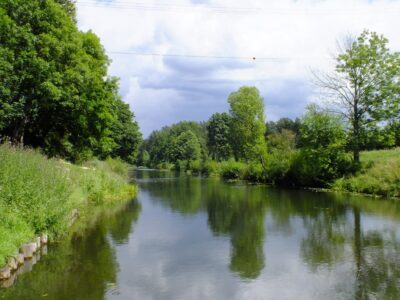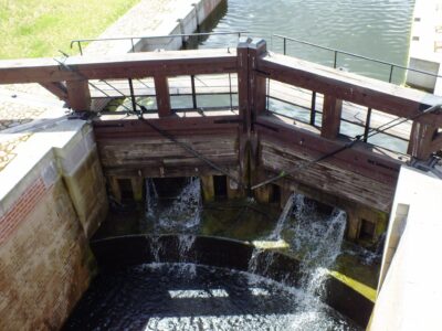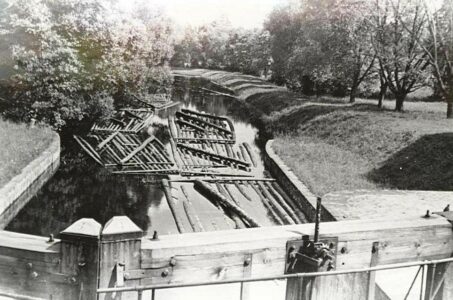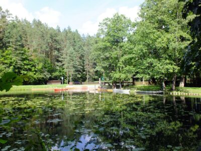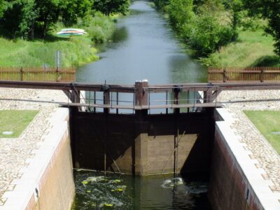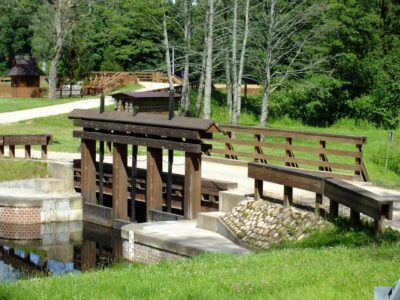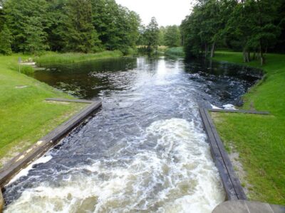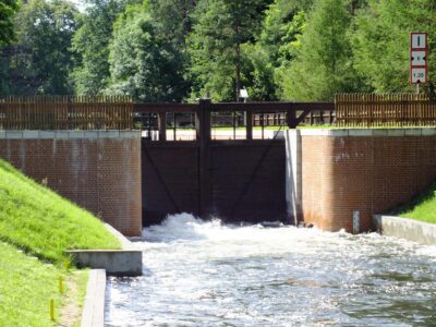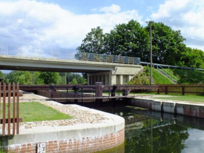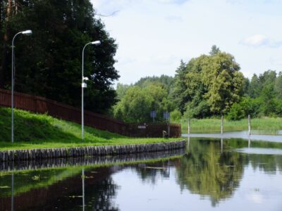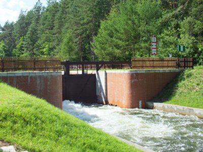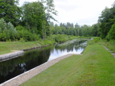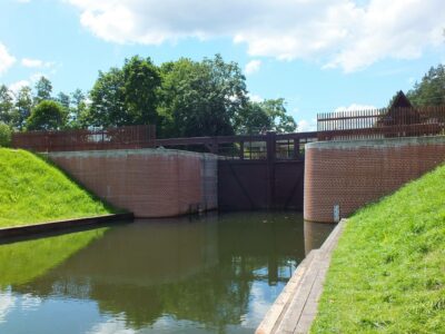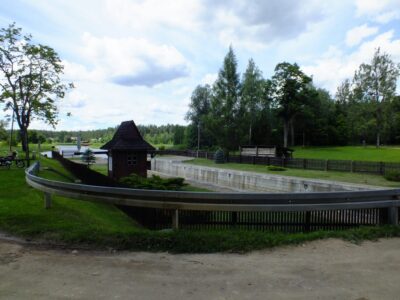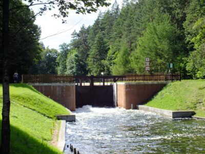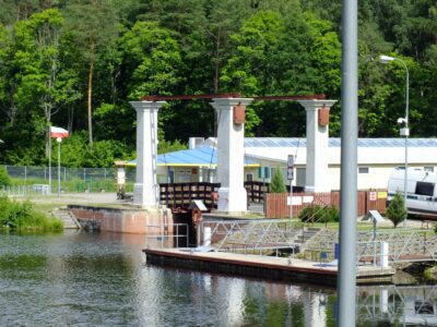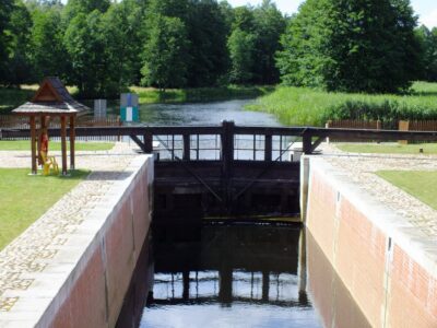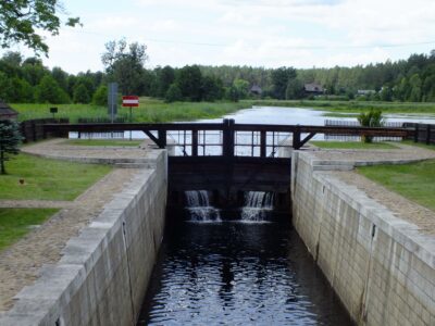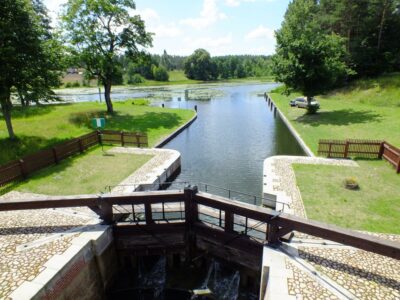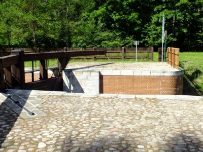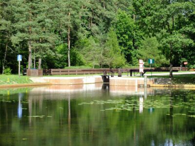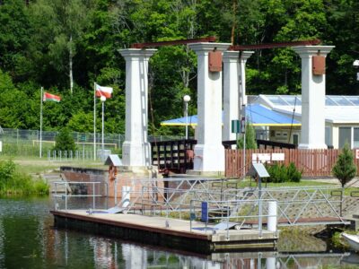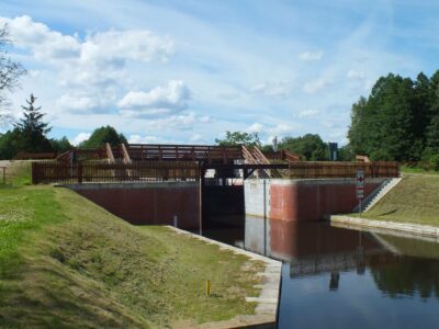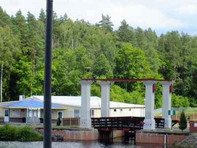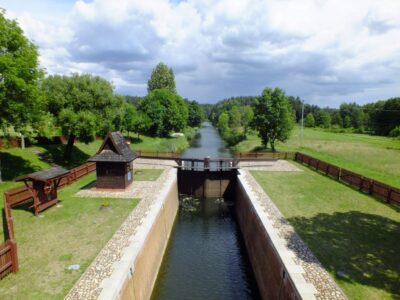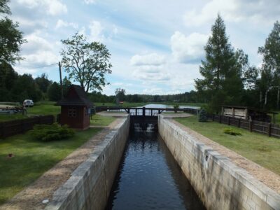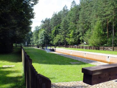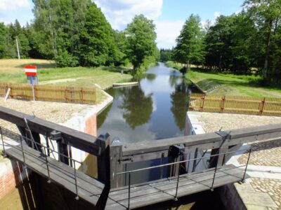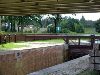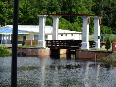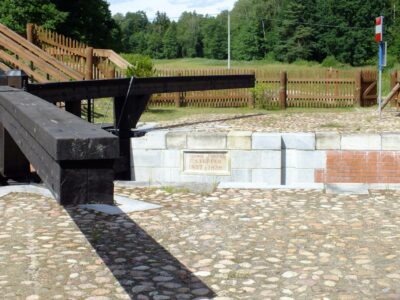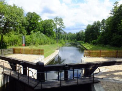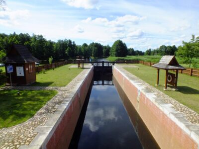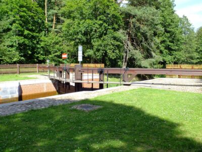 The twelfth lock on the Augustów Canal, located on 71.2 kilometer of the channel, counting from the Biebrza side. It connects the artificial part of the canal with the section running along the canalized riverbedl of Czarna Hańcza. Built in 1828 by Lieutenant Eng. Konstanty Jodko. The lock length is 44.40 m, width is 6.10 m, and the level difference is 2.98 meters.