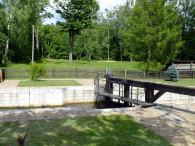 The fourteenth lock on the Augustów Canal (counting from the side of Biebrza located on 77.4 kilometer). Built in 1828-1829 by Edward Tadeusz Bieliński and Michał Horain. One-chamber lock with a length of 43.4 m, width: 5.94 m. Closed from the end of World War II until a major renovation in 2005-2008. The border of Poland runs through the middle of the channel section behind the lock.
