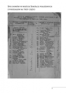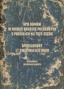 Niniejszy spis został opracowany na podstawie Spisu domów w mieście Sokółka położonych z podziałem na trzy części z 27 kwietnia 1831 – z języka rosyjskiego przetłumaczył Dominik Pietrasz, emerytowany adwokat 11 sierpnia 1973 r. Nie był to spis ludności – oryginał zawierał tylko nazwiska i imiona właścicieli domów. Został tutaj uzupełniony o wszystkie inne dostępne informacje. Informacje uzupełniające i poprawki dodano na podstawie danych z ksiąg metrykalnych parafii św. Antoniego w Sokółce.