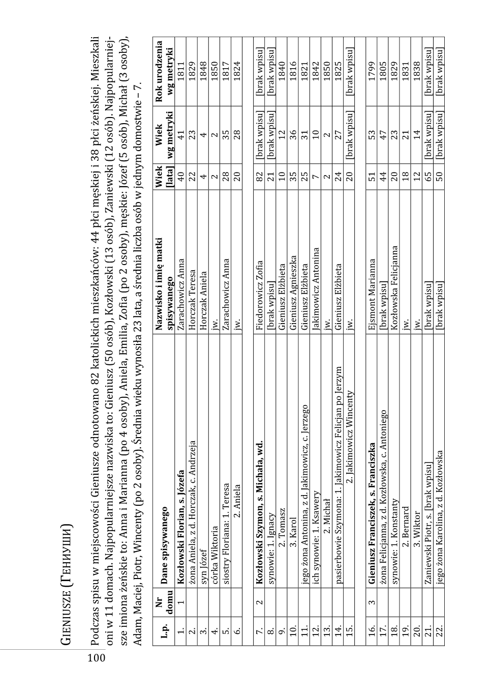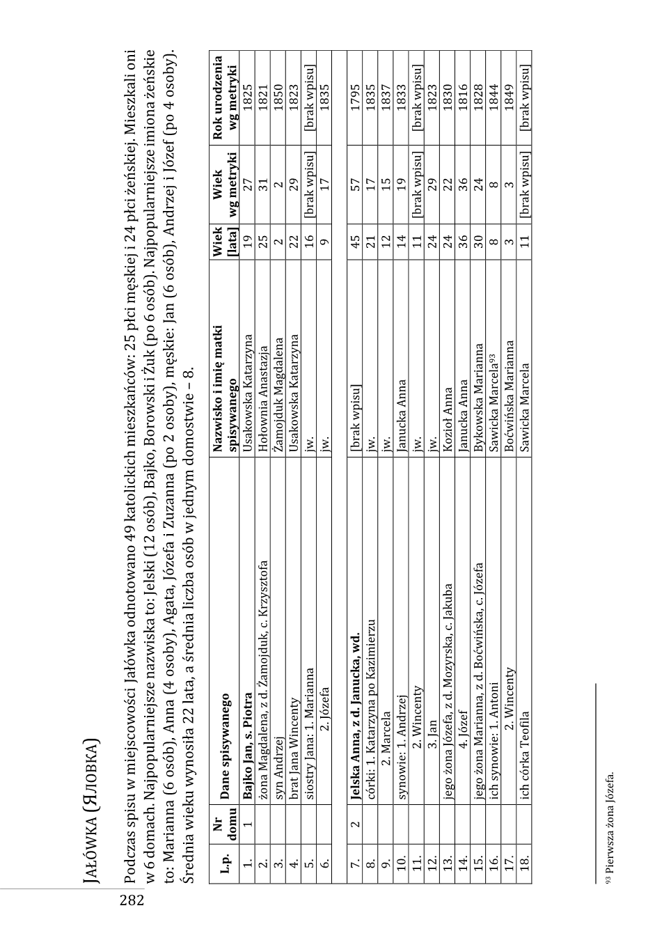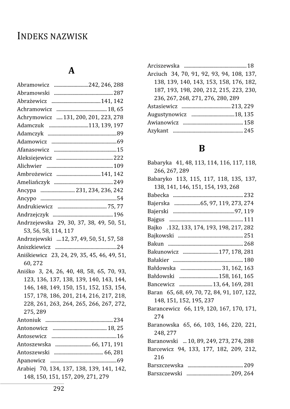 Lista nazwisk występujących w spisie