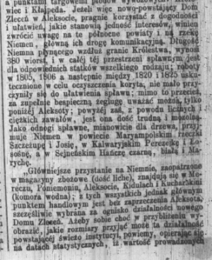 W związku z otwarciem Domu komisowego w Aleksocie, ukazał się w Dzienniku Poznańskim, nr 120 z 1860 roku artykuł opisujący, dlaczego Kanał Augustowski nigdy nie osiągnął znaczenia, jakie mu przypisywano podczas projektowania i budowy. Ale jest w nim sporo informacji o sytuacji gospodarczej Guberni Augustowskiej, głównych towarach wywozowych. Autor sugeruje również, iż sytuację gospodarczą mogłoby poprawić powstanie Domu Zleceń Rolników Augustowskich. Czy powstał taki?