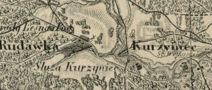 Jest to piętnasta, graniczna śluza, przez środek której przebiega granica polsko-białoruska. Śluza zbudowana została przez Konstantego Jodko i Fryderyka Wielchorskiego w 1829 roku. Dawniej po drugiej stronie śluzy, którą pokonywało się przez most zwodzony, znajdowała się wieś Kurzyniec. Założona została przed rokiem 1645 jako niewielka osada rudników. W 1688 osadę zwano Rudą na Hańczy, zaś w XIX wieku była siedzibą strażnika leśnego. W roku 1939, po wkroczeniu Rosjan, mieszkańców prawdopodobnie wywieziono lub zastrzelono. Ponoć jeszcze teraz nad brzegiem Kanału znajduje się czasem ludzkie kości. Obecnie po wiosce nie pozostał żaden ślad, a pola uprawne zarosły lasem. Tak opisano wieś Kurzyniec w Słowniku Geograficznym Królestwa Polskiego: “Kurzyniec 1.) wś rząd., pow. augustowski, gm. Wołowiczowce, par. Teolin. Leży nad Kanałem Augustowskim, śród lasów sosnowych, na piaskach; chaty nędzne, ludność uboga, żyje z rybołówstwa, pędzenia smoły, sieje grykę. Jest tu 10 dm. W 1827 r. 12 dm., 76 mk. Spis urzędowy miejsc. gub. suwalskiej “