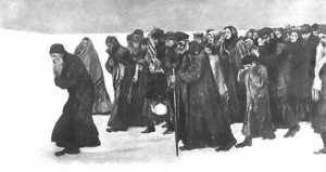 Zbliżał się pochód, na którego czele szedł młody, przystojny mężczyzna, niosący na rękach niemowlę. Obok szła również wysoka młoda kobieta, prowadząca około 5-letnie dziecko. Po przyjściu do domu dowiedziałem się, ze mężczyzna był chirurgiem, a kobieta lekarką dziecięcą, u której matka moje leczyła siostrę Marysię i brata Michała. Za nimi szli czwórkami kobiety i mężczyźni. Wszyscy coś nieśli – jedni węzełki, inni małe dzieci.