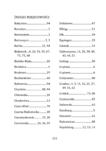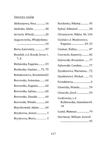 Książka zaopatrzona jest w indeksy wymienionych w niej nazwisk i miejsc.