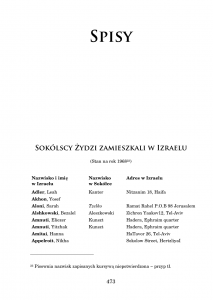 Skłaniamy nasze głowy w smutku i cierpieniu wspominając naszych męczenników; tych, których kochaliśmy, i tych tak nam miłych, którzy oddali swoje życie uświęcając Najwyższego, a swoją śmiercią wyznaczyli ścieżkę dla naszego życia, wolności i narodowej niepodległości. To nam, pozostałym przy życiu uchodźcom z Sokółki, mieszkającym tu w Izraelu, przypadło napisać tę księgę jako pomnik dla naszych matek, ojców, braci i sióstr, których poprowadzono jak jagnięta na rzeź; których zabijano na różne sposoby − kamieniując, paląc, gazując, dusząc.