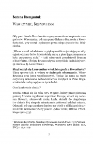 Bożena Diemjaniuk w eseju zatytułowanym „Wawrzyniec, Brunon i inni” przytoczyła fragmenty spisanego przez Brunona z Kwefurtu żywota św. Wojciecha mówiące o wyglądzie św. Wawrzyńca, o Jego pomocy królowi Ottonowi i zesłaniu wielu niepowodzeń na jego syna będących karą za zniesienie przez niego biskupstwa.
